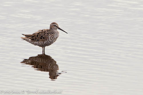 I had a photography “lifer” yesterday at Viera Wetlands – my first up-close Stilt Sandpiper. He was hanging out with some Black-Necked Stilts in a nice shallow part of the water. He’s molting into basic plumage, and look at those wings! They show a lot of wear and tear from his long trip south. Non-birding friends are often surprised to hear that fall migration begins so early in the summer. They are even more surprised to hear that these birds nest in the highest reaches of the Canadian Arctic, then fly across the planet to winter throughout South America. Talk about a long trip!