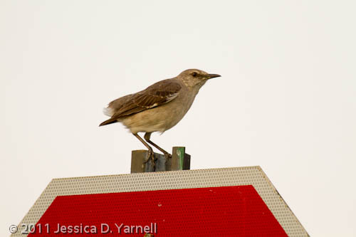 I posted recently about the poor mockingbird in our neighborhood who is missing a tail. We continue to see him regularly–usually on his favorite stop sign–and he continues without his tail. Hopefully it will grow back soon. I told him all about the Snow Bunting that came to visit Palm Coast this winter, and how he grew his tail back. In the meantime, Rich and I have nicknamed this guy “Stumpy.” Poor thing!