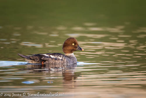 December 28, 2014 - I saw my lifer Common Goldeneye tonight, at a pond in Sanford. She was hanging out with Hooded Mergansers and gave me a nice wing flap.
